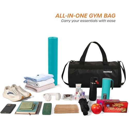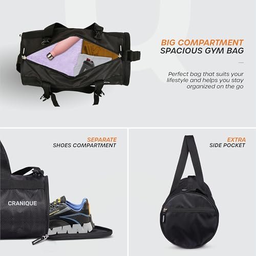 #Cranique #Duffle #Gym #Bag #Shoe #Compartment #Yoga #Mat #Holder #Shoulder #Strap #Men #Women #Sports #Bag #Kit #Bag #QGB1Black