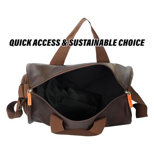 Kuber Industries Leather Sports Fitness Gym Bag for Man | Gym Bag with Shoe Compartment & Adjustable Strap | Brown