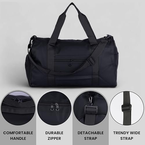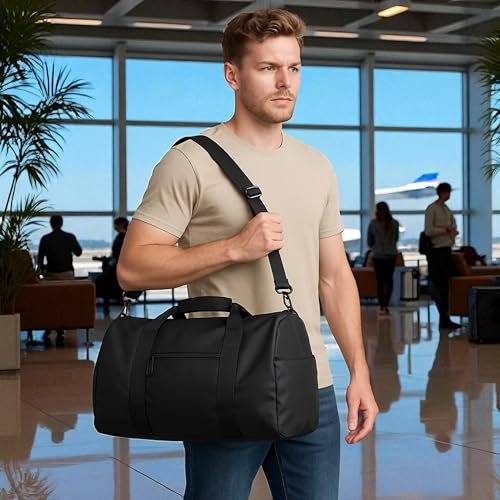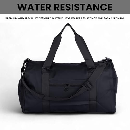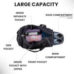 TS WITH TECHSUN Large Travel Gym Duffle Bag for Men Women – 47cm Water-Resistant Sports Bag with Shoe Compartment, Adjustable Strap, Multiple Pockets for Workout, Fitness, Travel, Weekend (Black)