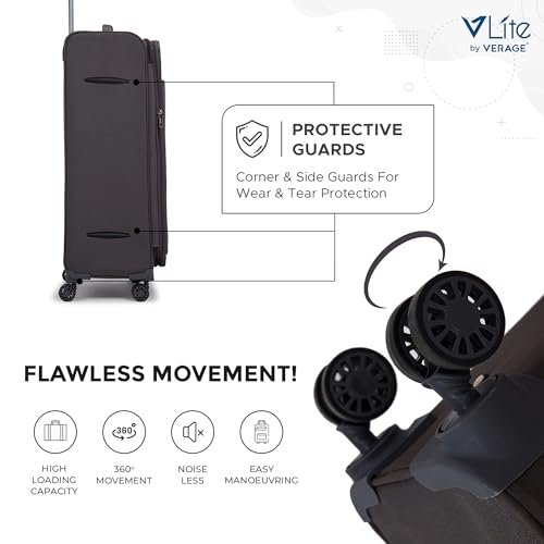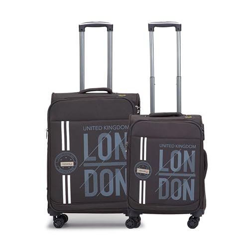 V Lite – Moscow Combo Set of 2 (Small + Medium) Softside Trolley Bag, Cabin 20″ + Check-in 24″ Expandable Suitcase Travelling Luggage with Anti-Theft Zippers for Men and Women (Grey)