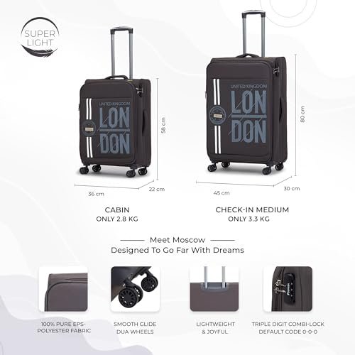 Be the first to review “V Lite – Moscow Combo Set of 2 (Small + Medium) Softside Trolley Bag, Cabin 20″ + Check-in 24″ Expandable Suitcase Travelling Luggage with Anti-Theft Zippers for Men and Women (Grey)”